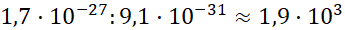Działania z notacją wykładniczą wykonuje się tak samo, jak działania na potęgach. Aby odnaleźć pożądaną wartość, należy podzielić masę protonu przez masę elektronu.