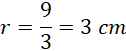 Promień okręgu ma długość 3 cm.