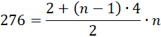 są kolejne liczby naturalne, które przy dzieleniu przez 4 dają resztę 1, określ, jak wiele początkowych wyrazów tego ciągu należy dodać, aby otrzymać sumę równą 276.