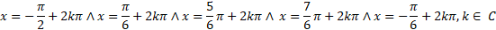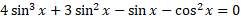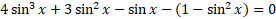 Sprowadź całe równanie do postaci, w której są same wyrażenia z sinusami. Załóż, że sinus jest równy t – jest to zmienna pomocnicza. Pamiętaj o zapisaniu zbioru rozwiązań dla t. Skorzystaj z tabeli Hornera, aby znaleźć pierwiastki równania. Rozwiąż trzy równania. Na koniec zsumuj przedziały rozwiązań trzech równań i wypisz te rozwiązania, które należą do zadanej dziedziny.