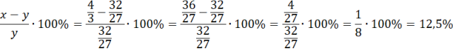 Wyznacz dokładne wartości liczb x i y. Zauważ, że aby obliczyć o ile liczba x jest większa od liczby y musisz obliczyć iloraz ich różnicy przez wartość liczby y i uzyskany wynik pomnożyć przez 100%.