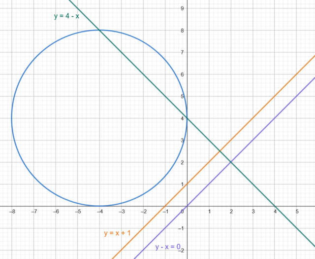 to jego promień i na tej podstawie narysuj go w jednym układzie współrzędnych z podanymi prostymi.
