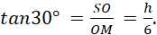 Kąt między ścianą boczną a podstawą to ∠SMO=30°.