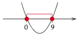 Zaznacz miejsca zerowe na osi, ramiona paraboli skieruj w górę, ponieważ współczynnik przy x jest dodatni. Zaznacz na niej argumenty, dla których parabola przyjmuje wartości niedodatnie, będzie to rozwiązanie nierówności.