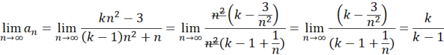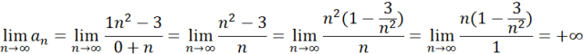 Jeśli ciąg jest rozbieżny do nieskończoności, to potęga w liczniku musi być wyższa od potęgi w mianowniku. Należy tak dobrać parametr, aby n2 w mianowniku się wyzerowała.