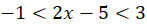 Dodaj do nierówności podwójnej obustronnie -1 w taki sposób, by po lewej i prawej stronie nierówności znalazły się liczby przeciwne. A zatem wartość bezwzględna z wyrażenia na środku musi być mniejsza niż liczba po prawej stronie nierówności.