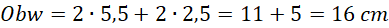 Długość boków: 5,5 cm; 2,5 cm; 5,5 cm; 2,5 cm