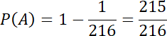 Wypisz wszystkie liczby sprzyjające podanemu zdarzeniu przeciwnemu do podanego sumując iloczyny prawdopodobieństw dla każdej z liczb i uzyskany wynik odejmij od całości, czyli 1.