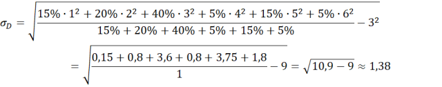 Skorzystaj z tego, że średnia arytmetyczna podanych liczb jest ilorazem iloczynu liczby uczniów z odpowiadającymi im ocenami przez całość, czyli wszystkich uczniów z danej klasy. Następnie oblicz odchylenie standardowe podanego zestawu liczb, czyli pierwiastek z wariancji: