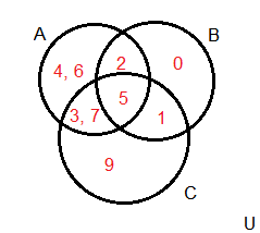 Wypisz elementy zbiorów A, B i C i umieść na odpowiednio na diagramie. Następnie wyznacz elementy podanego zbioru.