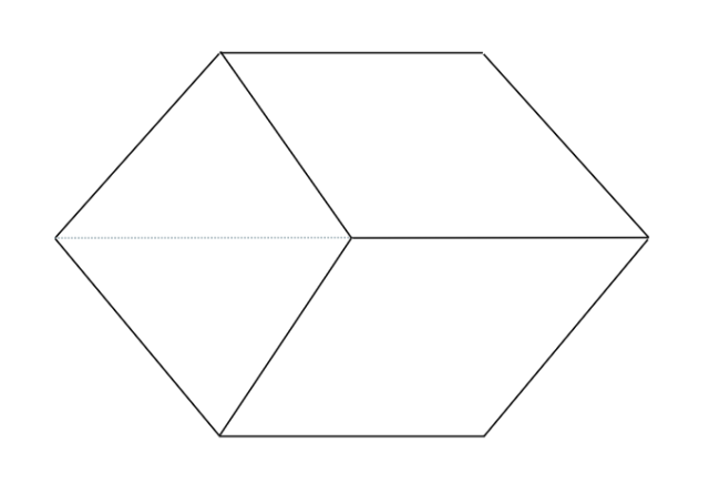 Naszkicuj sześciokąt, który jest foremny, a następnie podziel go na 3 romby.