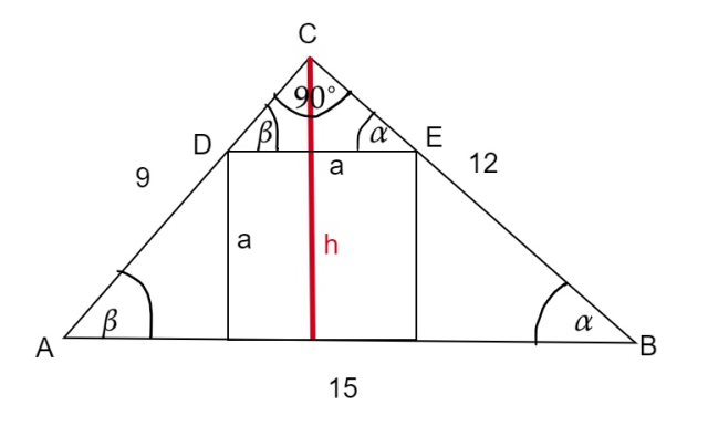 W tym zadaniu musisz skorzystać z podobieństwa trójkątów do wyznaczenia długości boku kwadratu.