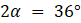 Kąt wpisany jest dwa razy mniejszy od kąta środkowego opartego na tym samym łuku, przyjmij, że α to miara kąta wpisanego: