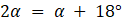 Dany kąt wpisany jest mniejszy od kąta środkowego o 18°. Kąty oparte są na tym samym łuku. Podaj miarę kąta środkowego.