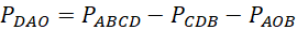 Pole trójkąta DAO można określić jako różnicę pól trapezu i trójkątów CDB i AOB: