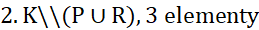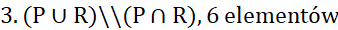 3 elementy, ponieważ cała klasa liczy 32 osoby, natomiast suma obu zbiorów P i R wynosi 29 (nie liczymy podwójnie elementów wspólnych). 32 - 29 = 3