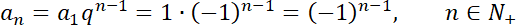 . Zauważ, że ciąg nie jest monotoniczny, gdy jego wyrazy są raz ujemne, a raz dodatnie. Podstaw go pod podane liczby i wyznacz dokładne wartości trzech początkowych wyrazów ciągu geometrycznego.