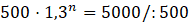 Musisz zatem znaleźć n, dla którego liczba bakterii wynosi 5000. W tym celu rozwiąż równanie: