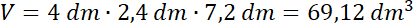 Zamień jednostki na decymetry ( ). Skorzystaj ze wzoru na objętość prostopadłościanu .