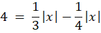 Znajdź liczbę, której czwarta część wartości bezwzględnej jest o 4 mniejsza od trzeciej części tej wartości bezwzględnej.