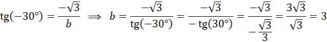 Zauważ, że podany kąt znajduje się w IV ćwiartce układu współrzędnych. W takim razie współrzędna a jest ujemna, a b – dodatnia. W celu ich wyznaczenia skorzystaj z funkcji tangens.