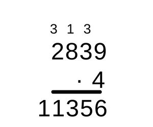 Oszacuj wynik, zaokrąglając liczby do pełnych tysięcy. Następnie sprawdź z pomocą mnożenia czy otrzymane oszacowanie jest poprawne. Wykonując mnożenie pisemne przez liczbę jednocyfrową, należy najpierw pomnożyć liczbę jednocyfrową, przez cyfrę jedności większej liczby. Jeśli otrzymana liczba jest dwucyfrowa, należy cyfrę jedności takiego wyniku zapisać pod słupkiem cyfr jedności, a cyfrę dziesiątek z wyniku trzeba przenieść dalej poprzez dopisanie tej cyfry nad kolejnym w lewo słupkiem, czyli słupkiem cyfr dziesiątek. Przy mnożeniu kolejnego słupka, do wyniku dodaje się przeniesioną cyfrę ze słupka wcześniej. W taki sam sposób należy mnożyć każdą kolejną cyfrę większej z liczb zaczynając od lewej i idąc do prawej. Jeśli w ostatnim słupku wyjdzie liczba większa od 10, to już nie wolno przenosić dalej, bo nie ma kolejnego słupka, lecz należy napisać całą liczbę.