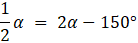 Kąt wpisany jest dwa razy mniejszy od kąta środkowego opartego na tym samym łuku, przyjmij, że α to miara kąta wpisanego: