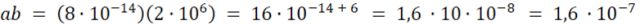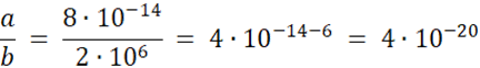 Obliczamy iloczyn i iloraz a i b korzystając z podanych wartości oraz działając na własnościach potęg.