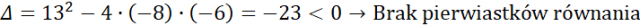 W tym zadaniu oblicz rozwiązanie nierówności -8x2 + 13x – 6 < 0.