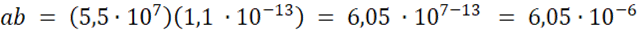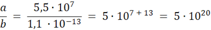 Obliczamy iloczyn i iloraz a i b korzystając z podanych wartości oraz działając na własnościach potęg.