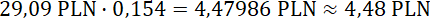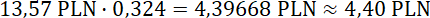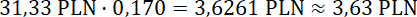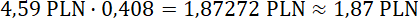 Skrót PLN oznacza polskiego złotego, czyli złotówki. Pomnóż cenę każdego produktu przez jego ilość lub wagę. Zaokrąglij wyniki do setnych części złotego (pełnych groszy) i dodaj do siebie te kwoty.