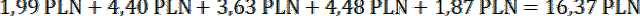 W tym zadaniu musisz obliczyć koszt każdego produktu i zsumować ze sobą te wartości.