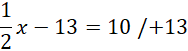 Ułóż równanie na podstawie treści zadania. Wiedząc, że połowa liczby x jest o 13 większa od 10 to, aby przyrównać wyrażenie