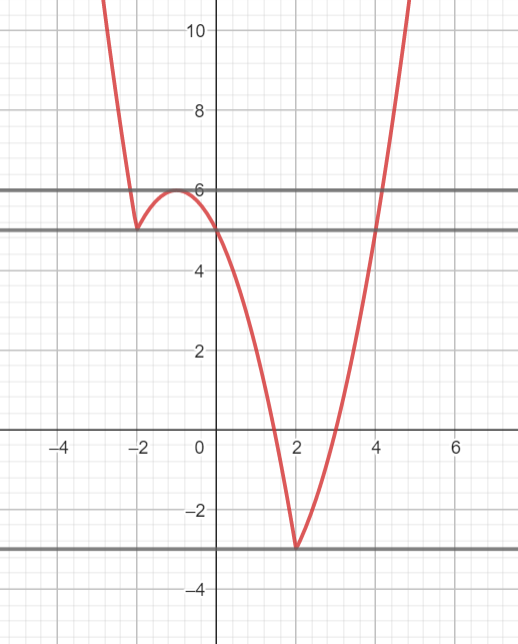 W tym zadaniu musisz wyznaczyć liczbę rozwiązań równania |x2 – 4| -2x = k – 1, w zależności od wartości parametru k. Następnie naszkicuj wykres funkcji y = g(k), która każdej wartości parametru k przyporządkowuje liczbę rozwiązań równania.