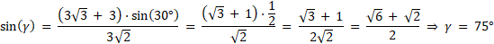 Z twierdzenia cosinusów wyznacz brakujący bok AB tego trójkąta. Następnie z twierdzenia sinusów wyznacz sinusów kata przy wierzchołki C. Posługując się tablicami trygonometrycznymi odczytaj miarę tego kąta.