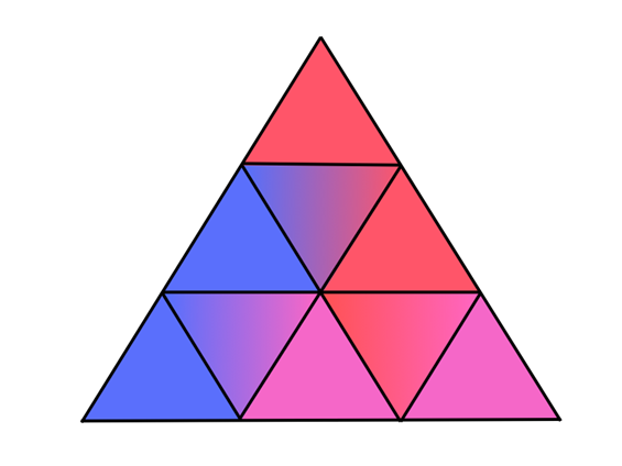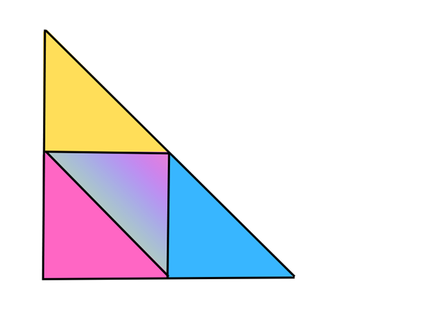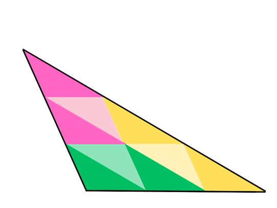 Narysuj dowolny trójkąt w zeszycie. Wykaż, że możesz go całkowicie przykryć trzema figurami, które mają osie symetrii przechodzące przez wierzchołki trójkąta. Figury te mogą na siebie nachodzić, ale nie mogą wystawać poza granice trójkąta.