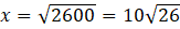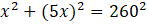 Wymiary stołu oznaczono jako x i 5x, i wstawiono do twierdzenia Pitagorasa, otrzymane wartości wstawiono następnie do wzoru na pole prostokąta.