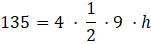 W tym zadaniu musisz obliczyć wysokość ostrosłupa prawidłowego czworokątnego, którego pole podstawy jest równe 81, a pole jego powierzchni bocznej wynosi 135.