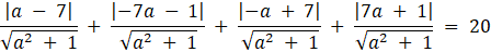 W tym zadaniu musisz wyznaczyć takie wartości parametru a, aby suma odległości podanej prostej od wierzchołków kwadratu ABCD jest równa 20.