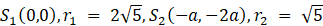 Podane nierówności opisują koła o środkach i promieniach odpowiednio