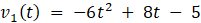 W tym zadaniu musisz znaleźć funkcje opisujące prędkości punktów w zależności od czasu, a następnie wyznaczyć jeden z momentów, w którym punkty te poruszają się z ta sama prędkością.