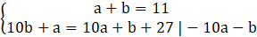 W tym zadaniu wyznaczyć szukaną dwucyfrową liczbę o sumie cyfr 11, jeśli wiadomo, że przy zamianie cyfr tej liczby miejscami, to otrzymamy liczbę o 27 większą od szukanej