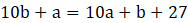 Jeżeli zamienimy cyfry tej liczby miejscami, to otrzymamy liczbę o 27 większą od szukanej.