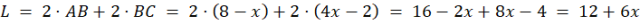 W prostokącie ABCD krótszy bok AB ma długość 8 – x, a dłuższy 4x – 2 dla pewnego rzeczywistego x. Wykaż, że obwód tego prostokąta jest większy od 24, ale mniejszy od 60.