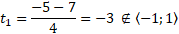 . Teraz użyj zmiennej pomocniczej t – pamiętaj o zapisaniu zbioru rozwiązań. Rozwiąż równanie kwadratowe – oblicz wyróżnik trójmianu i pierwiastki. Sprawdź, czy pierwiastki należą do zbioru rozwiązań t. Oblicz