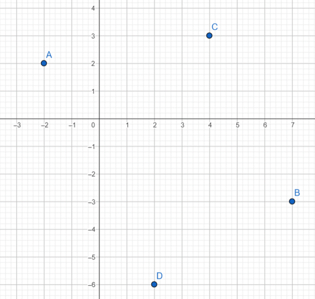 Dane są punkty A( - 2, 2), B(7, - 3), C(4, 3), D(2, - 6). W tym zadaniu musisz wykazać, że czworokąt ABCD jest trapezem i nie jest równoległobokiem.