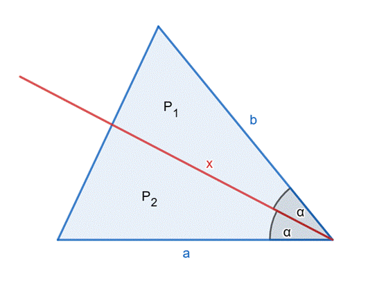 W tym zadaniu musisz wykazać, że jeśli pola powstałych, w wyniku poprowadzenia dwusiecznej jednego z kątów, dwóch trójkątów są równe, to dany trójkąt jest równoramienny.