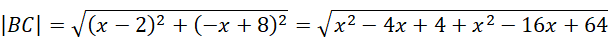 . Następnie przyrównaj do siebie obie wartości i wyznacz z równania pierwszą współrzędną x punktu C. kolejno podstaw otrzymaną wartość do równania prostej, na której leży punkt C, aby wyznaczyć jego drugą współrzędną.