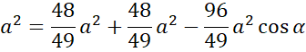 Z zależności podanej w treści zadania wyznacz długość wysokości ściany bocznej opadającej na podstawę. Następnie skorzystaj z twierdzenia Pitagorasa, aby wyznaczyć długość krawędzi bocznej oraz ze wzoru na pole trójkąta – ściany bocznej z wysokością opadającą na podstawę i na krawędź boczną, przyrównaj do siebie uzyskane wzory i z powstałego równania wyznacz długość wysokości ściany bocznej opadającej na krawędź boczną. Na koniec skorzystaj z twierdzenia cosinusów w trójkącie zawierającym krawędź podstawy i dwie wysokości ścian bocznych opadające na krawędź boczną i oblicz cosinus kąta między nimi.