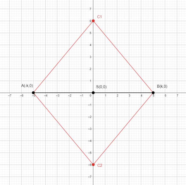 Odcinek C2S to wysokość trójkąta równobocznego długość wyraża się wzorem , czyli w naszym przypadku . Punkt C ma współrzędne .